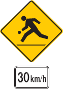 Playground zone — 30 km/h limit is in effect every day from dawn to dusk