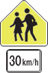 School zone — the tab underneath indicates the speed limit and the hours that it is in effect (in this case, the 30 km/h limit is in effect from 8 a.m. to 5 p.m. on school days)