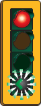 Steady red light — a red light means that you must come to a complete stop. You must wait for the light to turn green before you go straight ahead.