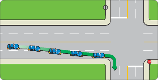 Turning lanes let you wait for a safe gap without holding up vehicles that are travelling straight through. Use the lane with the arrows only if you are turning left.