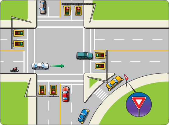 - If two vehicles arrive at the same time, the one on the right should go first.