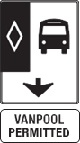 Vanpools (vehicles with six or more occupants) may also travel in the bus lane if a “Vanpool Permitted” tab is shown below the bus lane sign.
