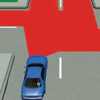 The red shading in the diagram below shows you which areas to check carefully before entering an intersection.