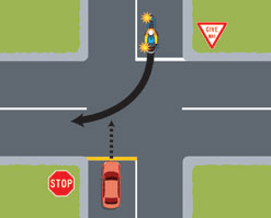 - If you are turning left at an intersection, give way to vehicles coming towards you that are turning right.