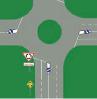 The picture below shows you where you can expect to see these signs at a roundabout.