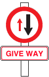 - A red circle shows you must give way