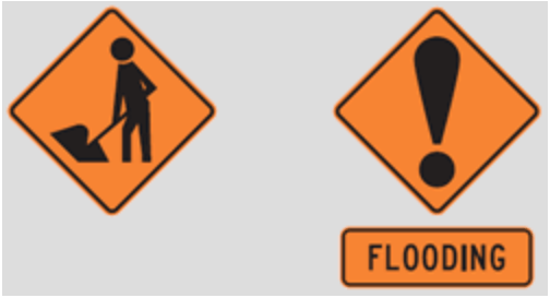 Road repair crews may sometimes need to stop traffic. They may use temporary traffic signals or hand-held ‘Stop/Go’ signs (shown below) to do this.