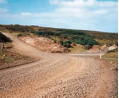 Gravel (sometimes called ‘metal’) is usually only used on roads that don’t have much traffic. Gravel roads tend to be minor roads in rural areas.