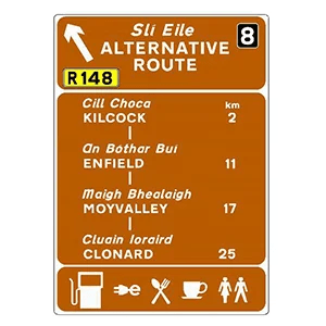 These signs are widely and successfully used on the motorway network throughout Europe and are strategically placed to inform motorists of an emergency or alternative diversion route for motorways.