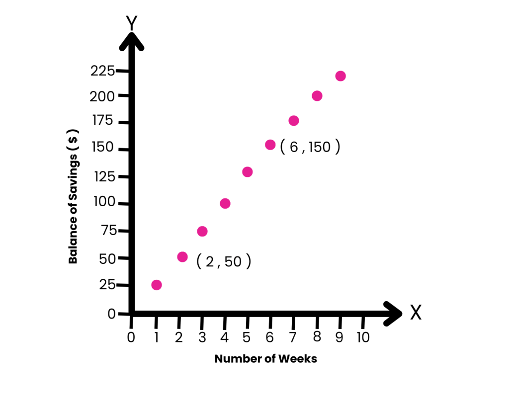The equation for this graph is y = 25x + 0. (The line intersects the y-axis at 0.)