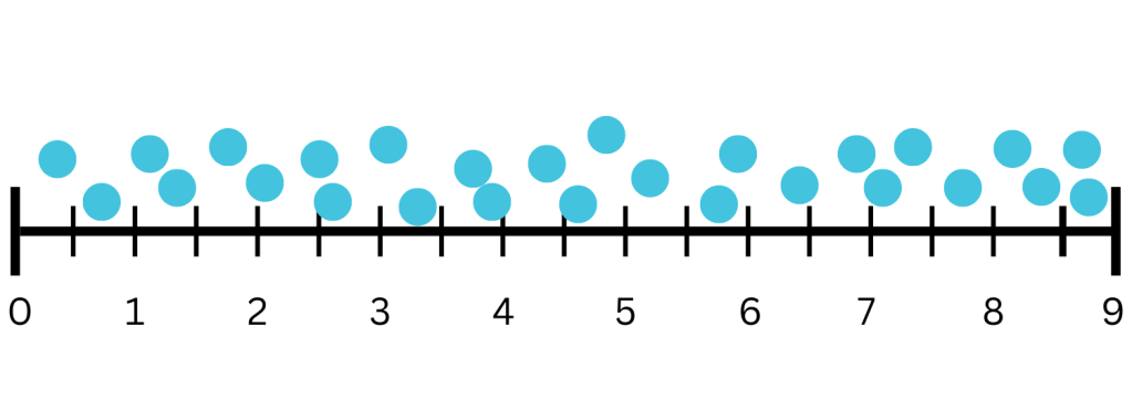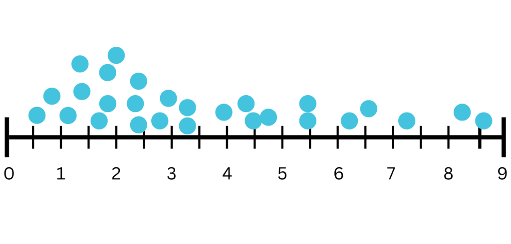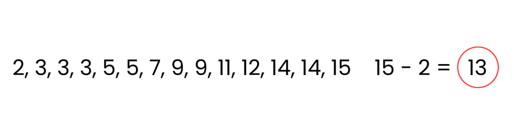 Range: The difference between the largest and smallest values in a data set. Find this by subtracting the smallest value from the largest.