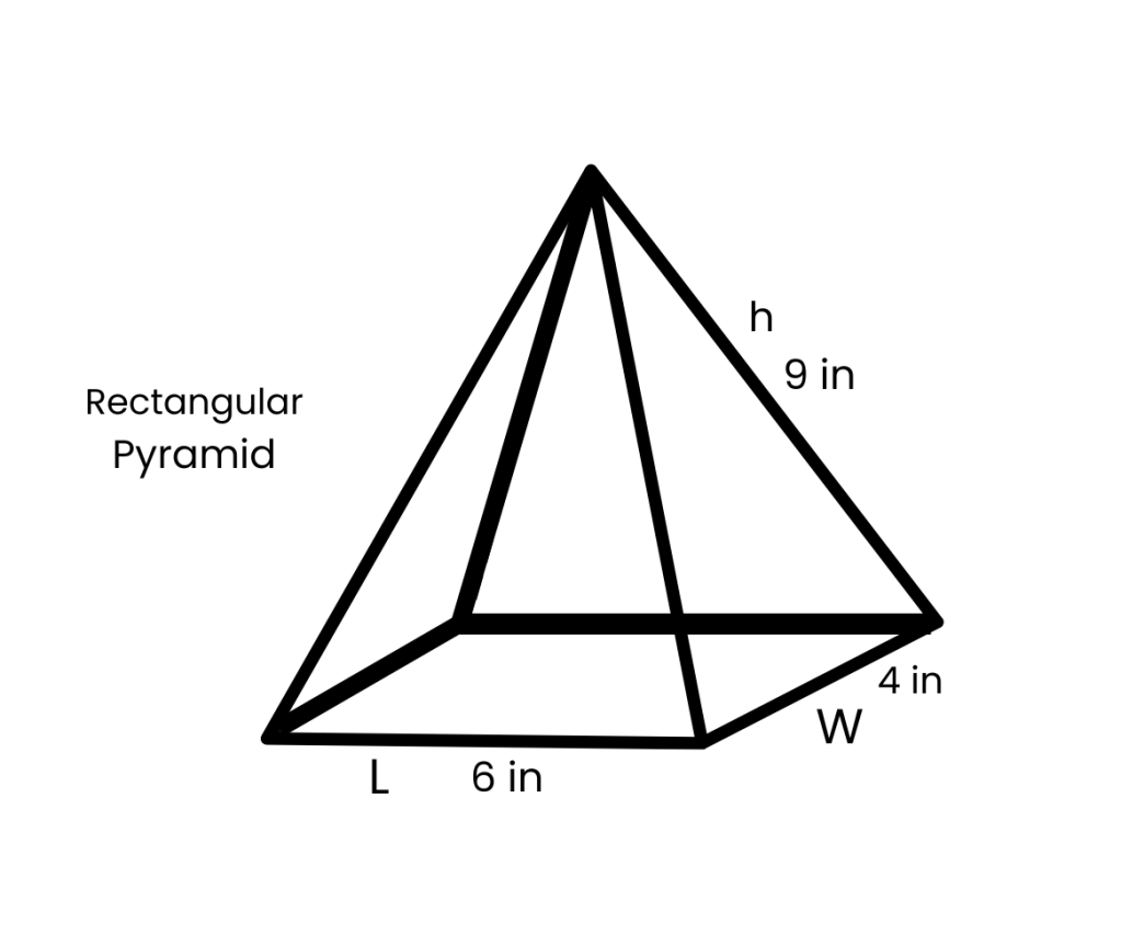 V = L x W x h / 3
