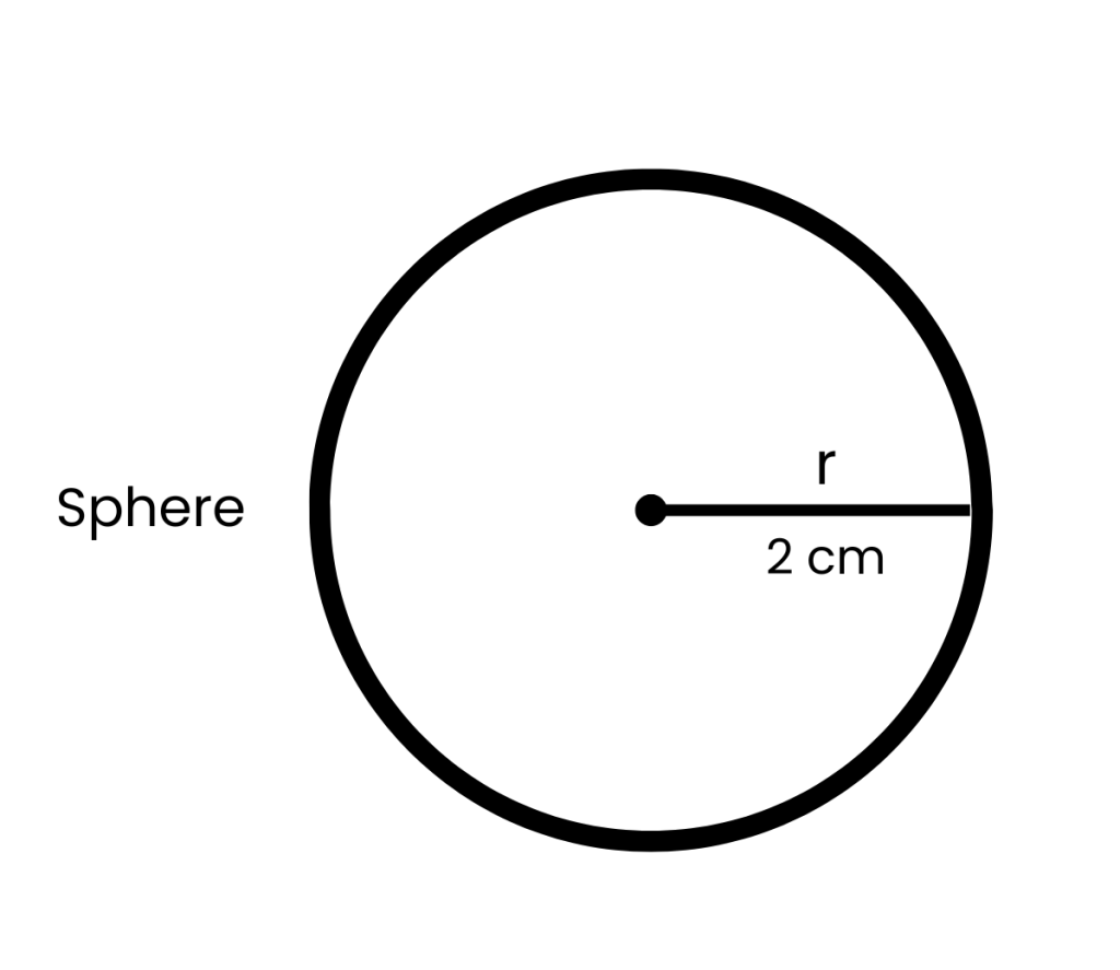 V = 4/3 π2^3 = 33.5 cm³